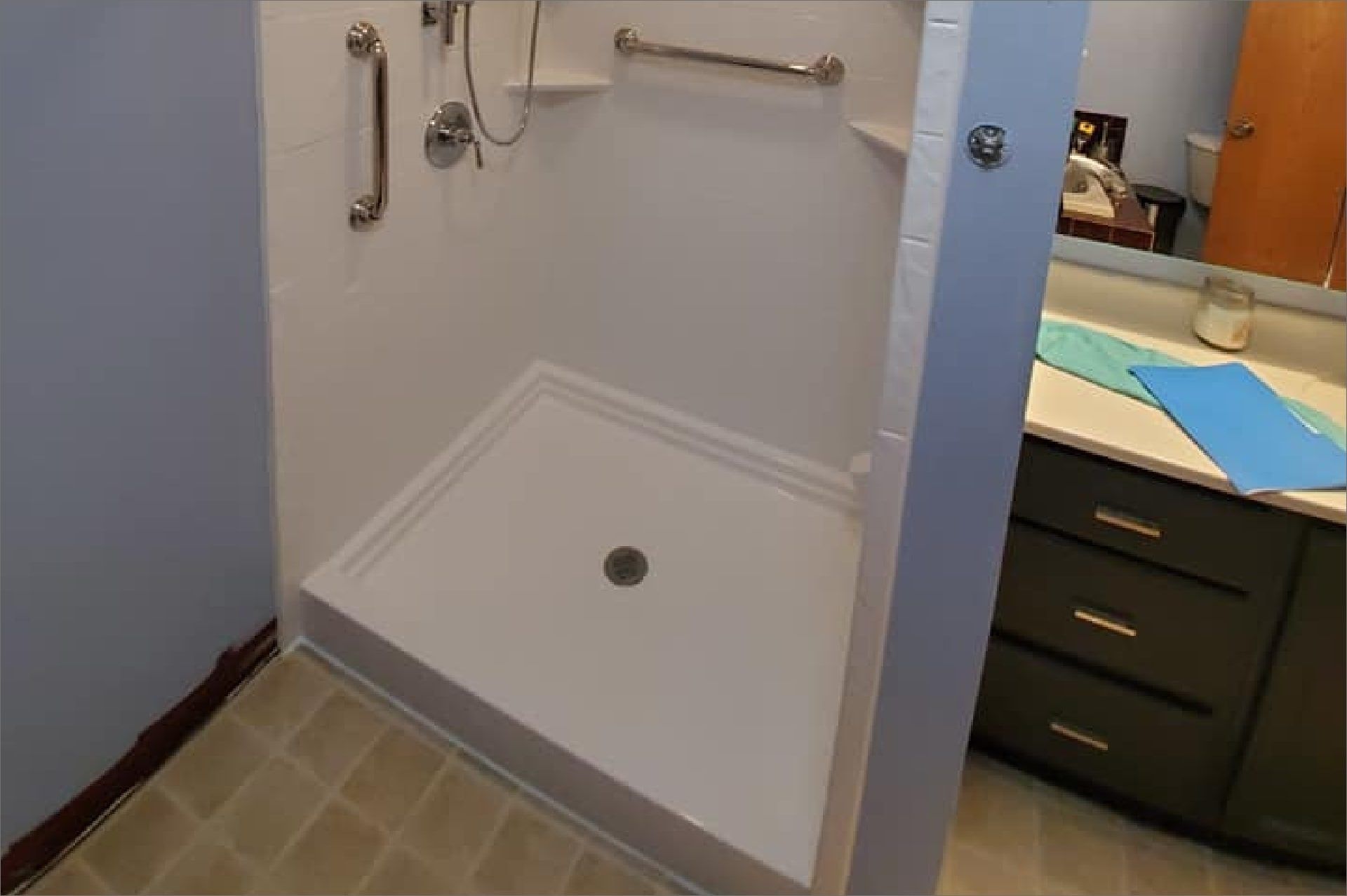 My husband and I are very impressed with the work that was done to our bathrooms, putting in a walk-in, in two bathrooms, tomorrow is the 2nd bathrooms time. Love the quality work and the new walk in with grab bars assisting in our safety. A much needed accessory. Thank you~